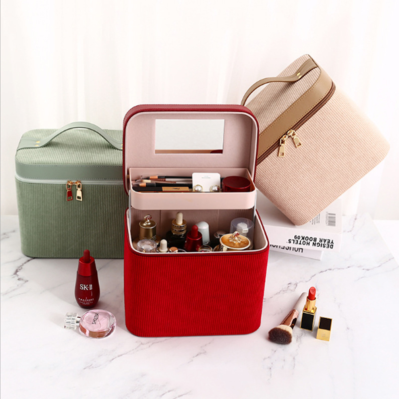 Zyravest Fashion Corduroy Cosmetic Case – Portable Multifunction Makeup Organizer with Zipper | Travel Storage Box (20–35L)