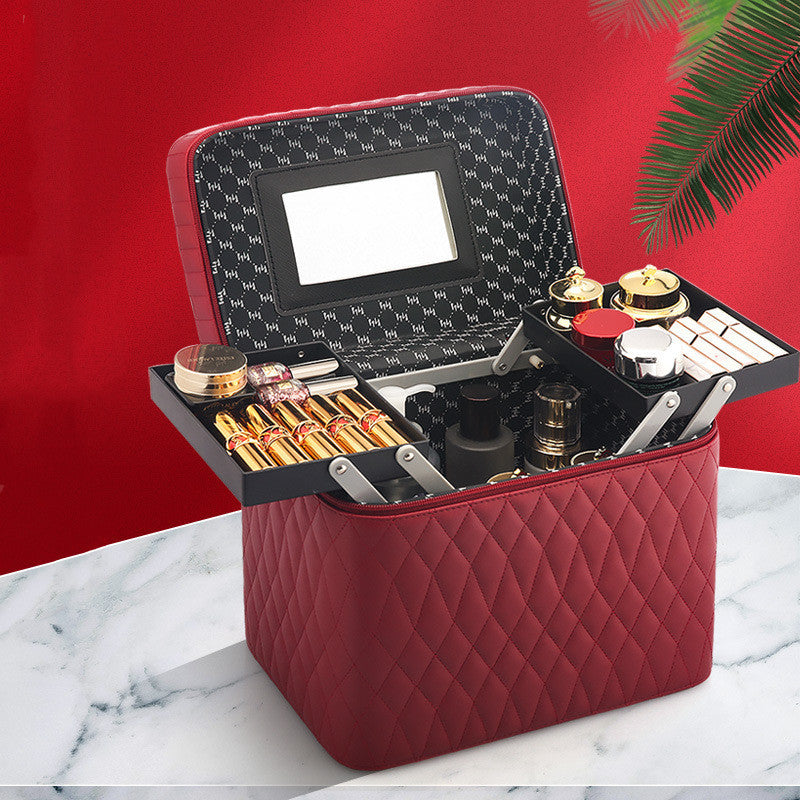 Zyravest Large Capacity Korean Style Cosmetic Storage Box – PU Leather Travel Makeup Case with Multiple Compartments & Handle