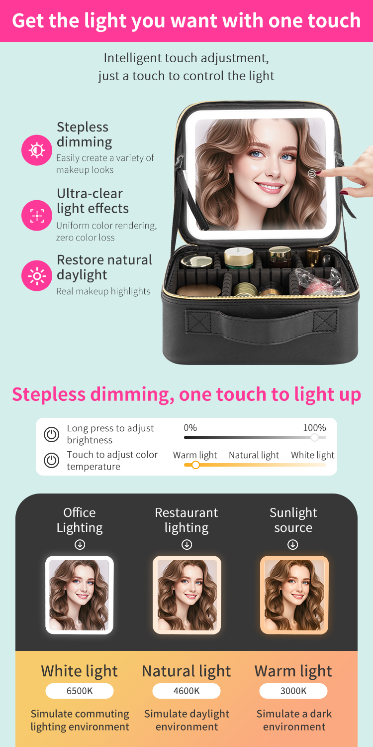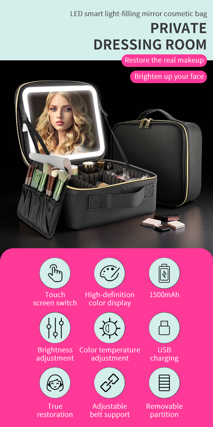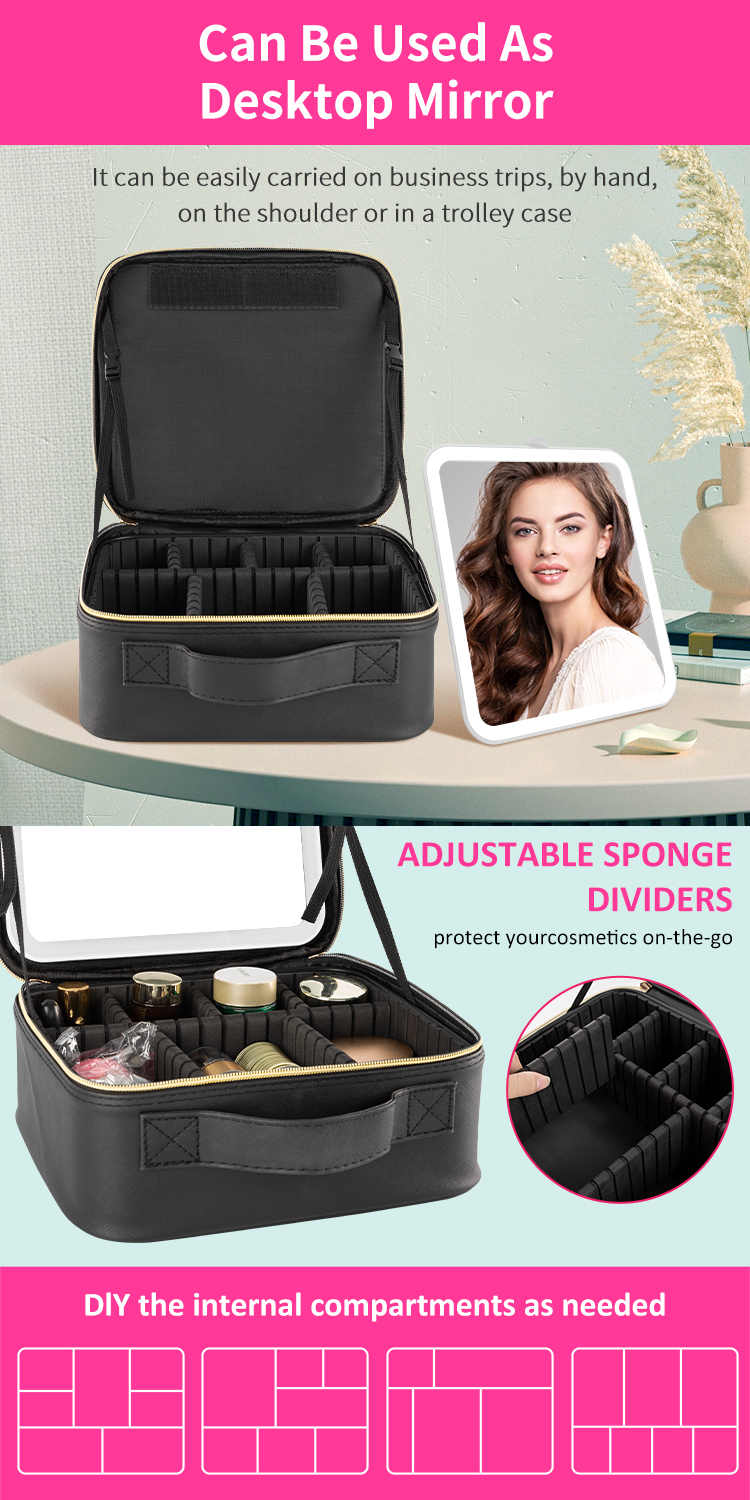Zyravest Professional Black Makeup Case with LED Light – Portable Cosmetic Storage Box with Mirror, Organizers & USB Charging